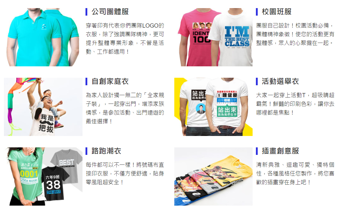 自己的T恤自己做,別再擔心和別人撞衫!客製化班服、社團制服、節慶活動T-shirt、公司週年紀念、親友情侶紀念都合適,還可以將路跑號碼印在T恤上,低風阻、運動更安全,多種色彩供您挑選。線上訂製讓您隨性設計,不再擔心數量,一件即可製作!