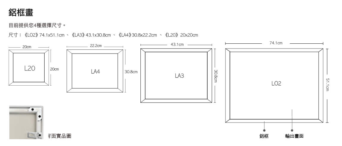 將婚約甜蜜、相聚歡樂、寶貝成長寫真、家旅合照的永恆瞬間,裝飾在日常生活中。健豪擁有多種鋁框尺寸規格供您挑選,交件速度位居全台之冠,利用質感鋁框讓框畫品質提升再升級,快把您的專屬照片找出來佈置家裡吧!