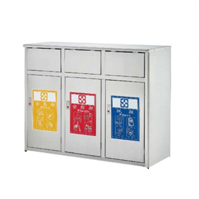 TST3-310B_不鏽鋼資源回收筒 (三分類平頂附推板)