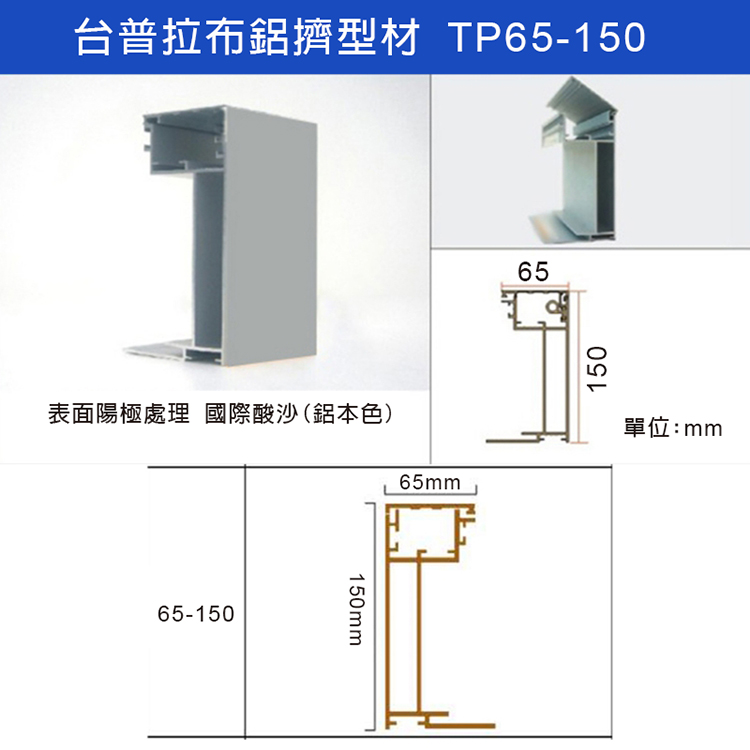 TP65-150_單面拉布燈箱型材 LED大型拉布燈箱邊框 雙噴無接縫燈箱