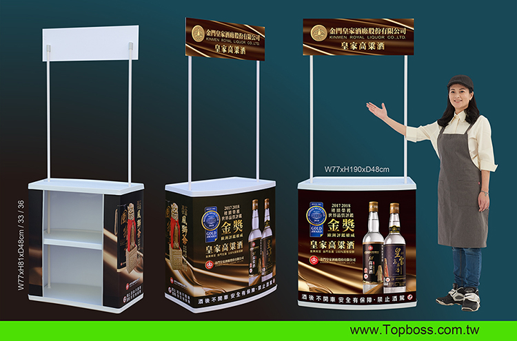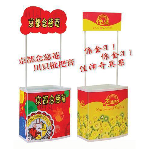 產品特性: 攜帶組合式促銷台,體積適中容易安裝,隨時立即展示,輕巧便攜,成本低適合各種賣場展覽、銷售會場、試吃廣告、巡迴展示、商業促銷......等