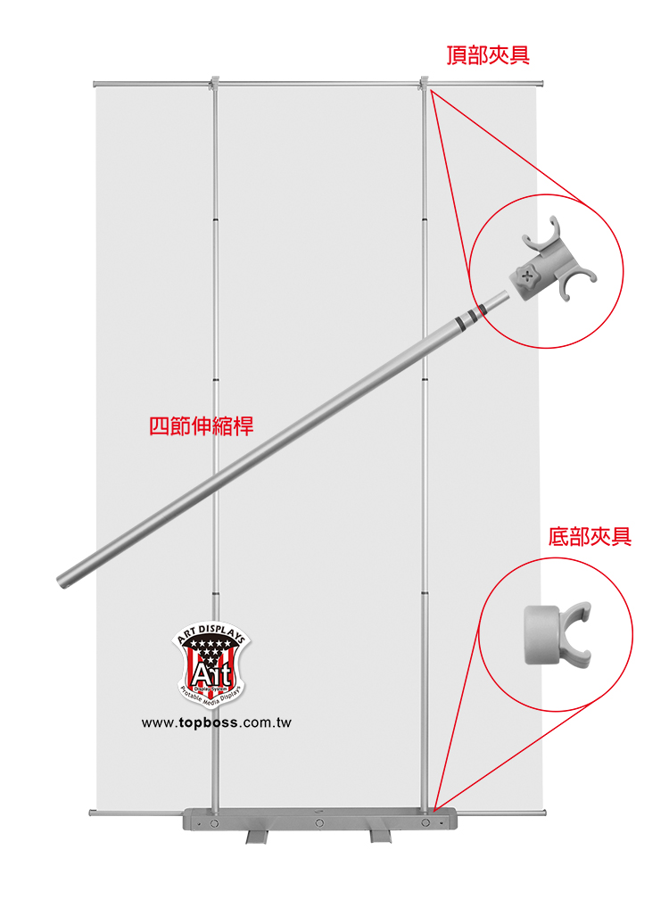 (二) 如圖所示︰畫面最高或最低 (A + B) B卡榫只能卡在第二節桿子,高度150cm限制