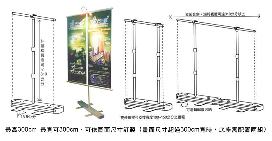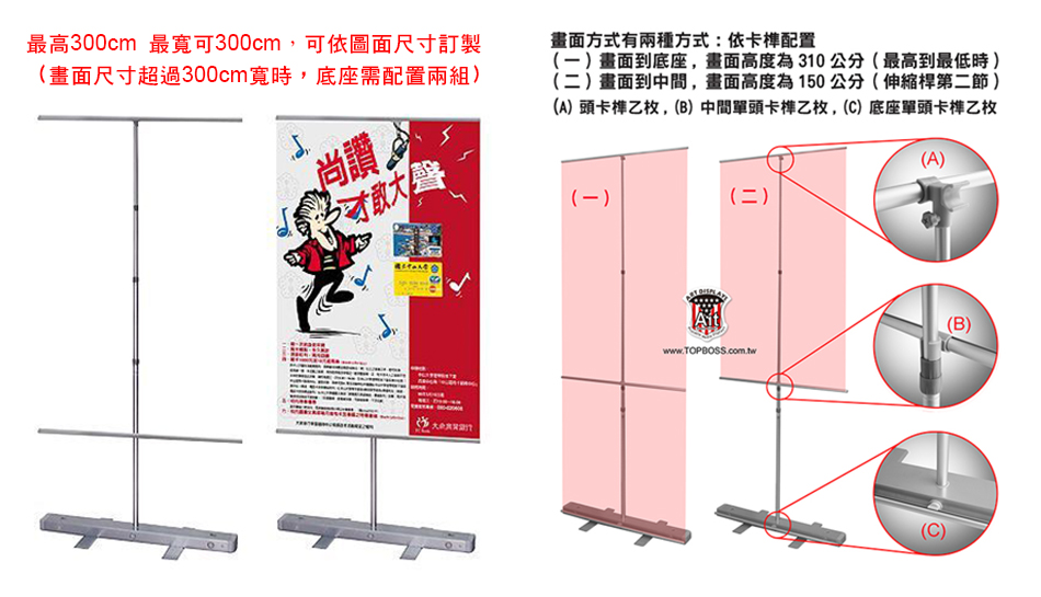 鋁合金材質,圖面可印製單面或雙面展示陳列