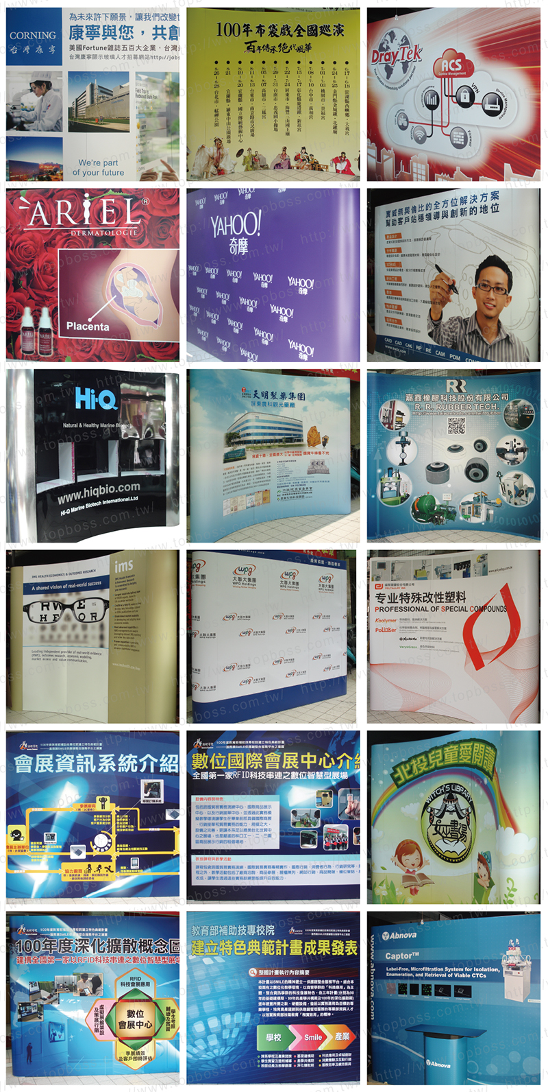 材 質: 鋁合金(直桿x29.包邊x4.膠板x6.磁條x1.燈具x4.拉桿箱x1) 產品特性: 最新技術的拉網式展屏,輕便的讓您難以置信集束成捆的網架,幾分鐘內彈起成一個大框架.既靈活又整潔,採用特製磁吸貼畫技術,配合專用投射燈,令您的展品陳列光彩奪目