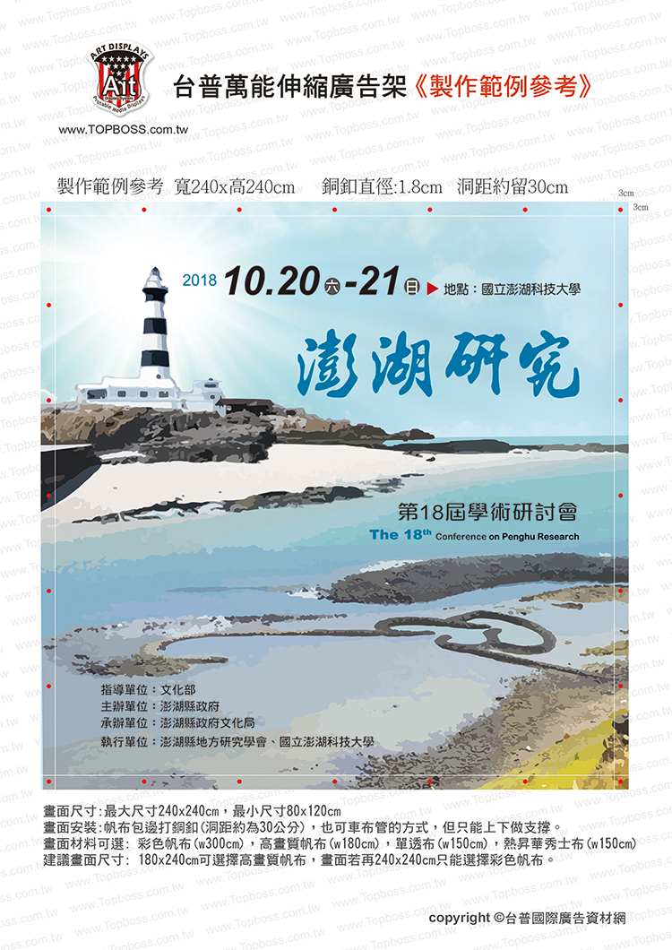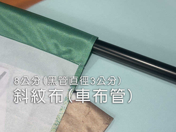 畫面安裝:帆布包邊打銅釦(洞距約為30~45公分),也可車布管的方式,但只能上下做支撐。