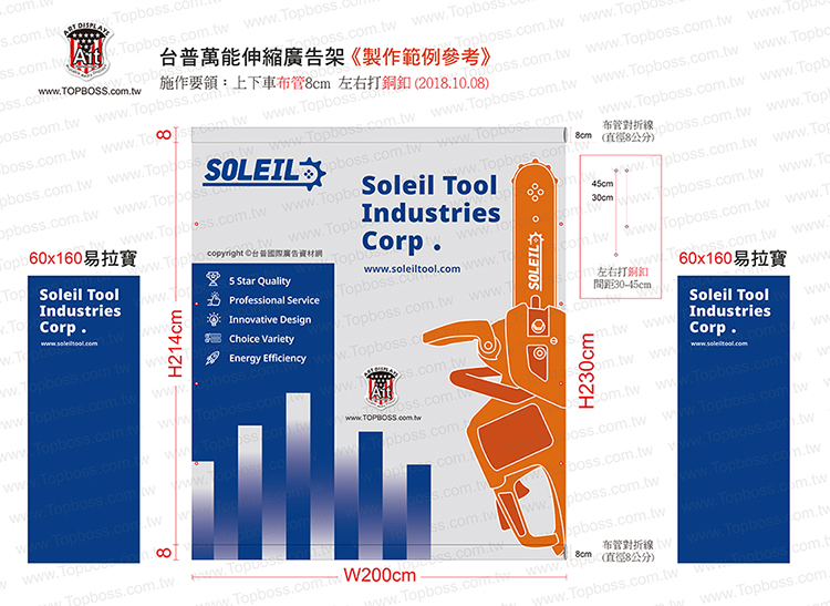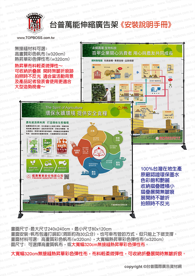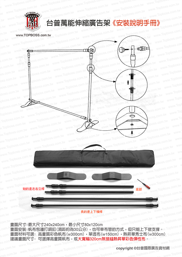 產品特性:伸縮調整大型海報廣告看板,展易萬能架可重覆換海報使用,高度寬度皆可自行調整配合輸出尺寸,是大型海報的宣傳好幫手。