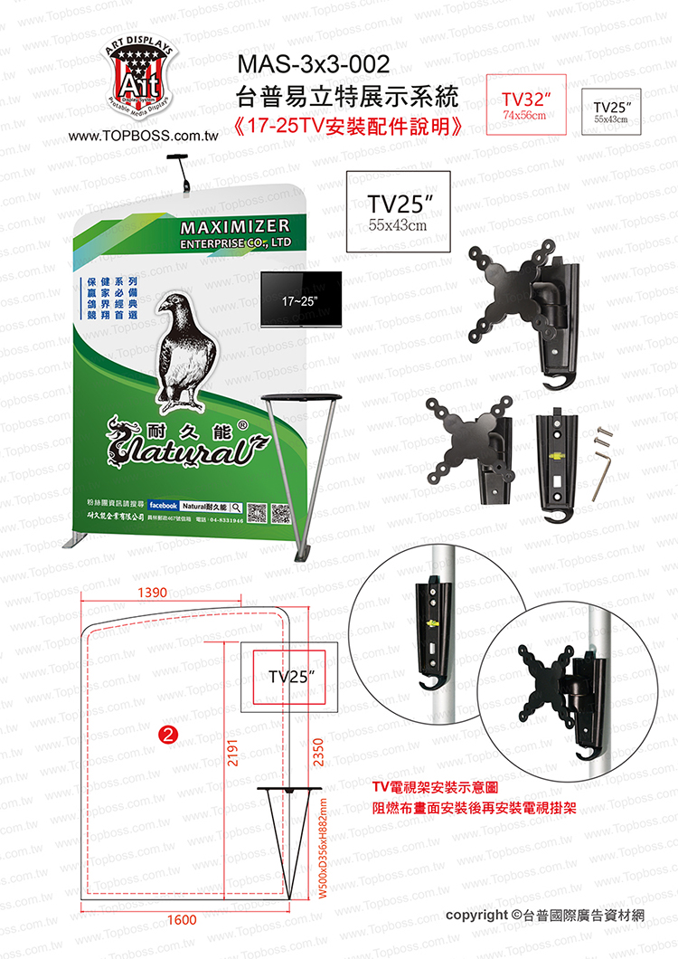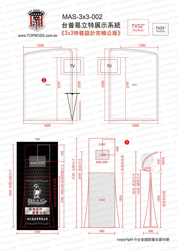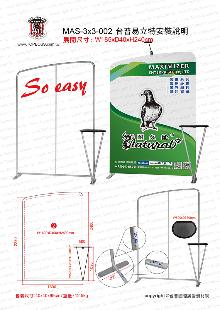 陳列台尺寸 : W50 x D35cm (陳列台上載重約 : 3~5kg )