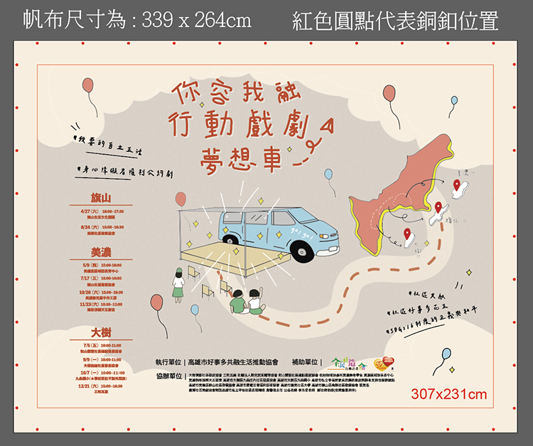 ※畫面建議︰一般帆布(寬318/500cm)、高解析帆布(寬318/500cm)、高遮光阻光帆布(寬318/500cm)、台製大型布旗布(寬318cm)捲收。