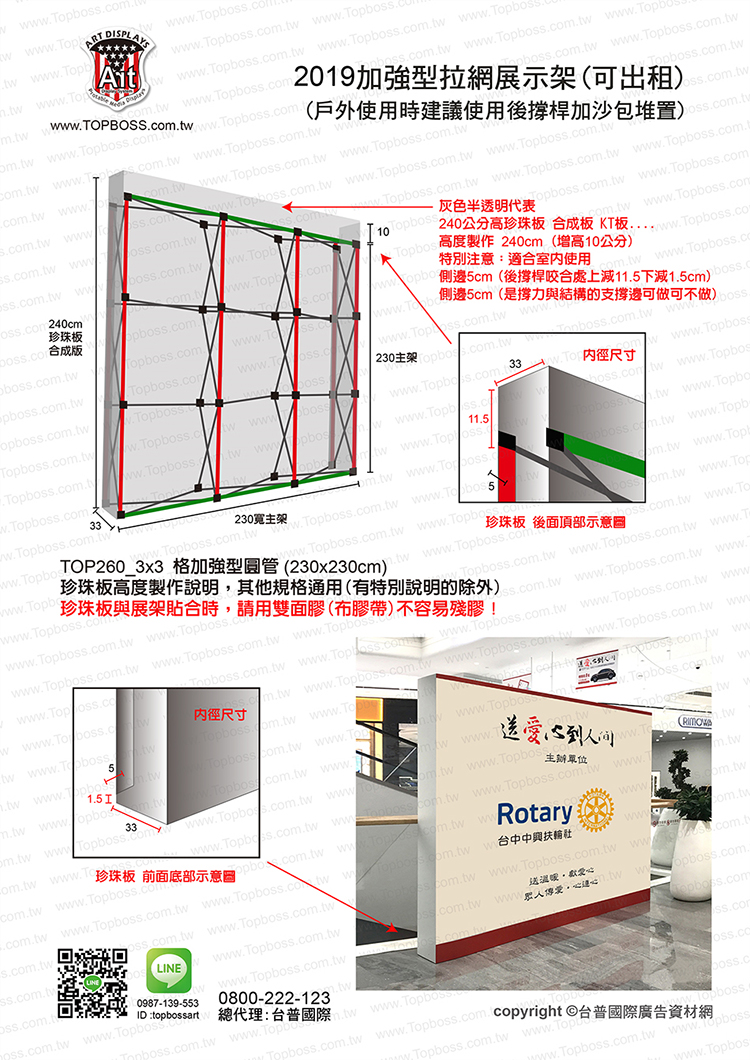 以上報價不含燈具,若用珍珠板(合成板,KT板)增高至240cm則無法安裝燈具。