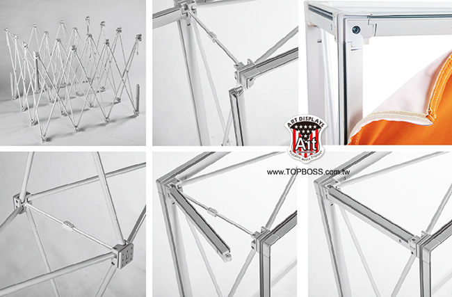 標準SEG彈出窗口基於傳統原則 彈出式框架加上發明的擠壓桿,帶有適合 Silicon Edge textile Graphic的通道。