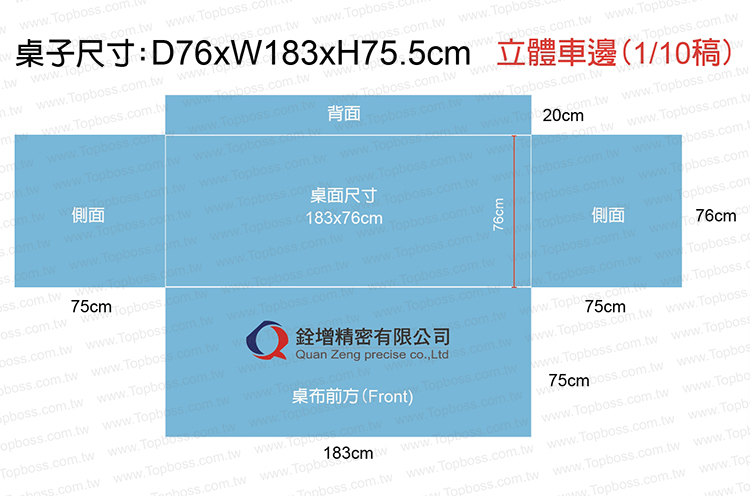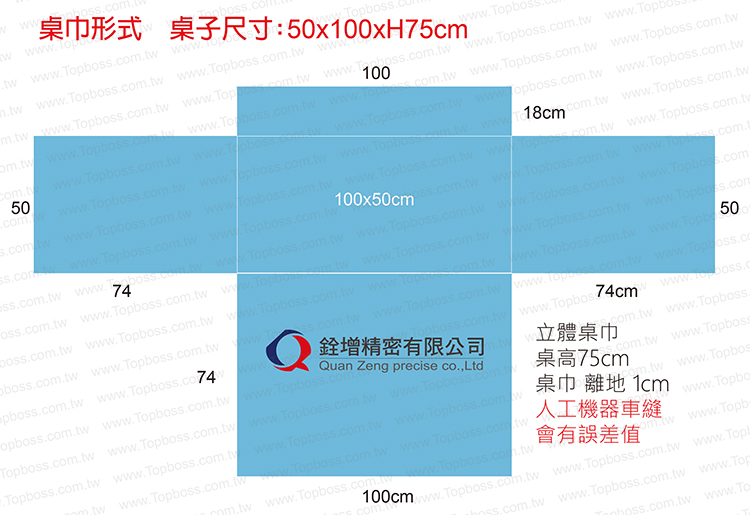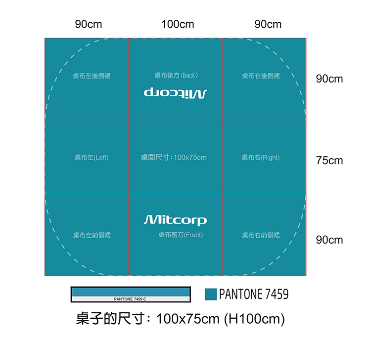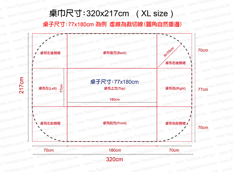 全罩式桌巾展開尺寸,兩種規格有後全罩及罩15公分