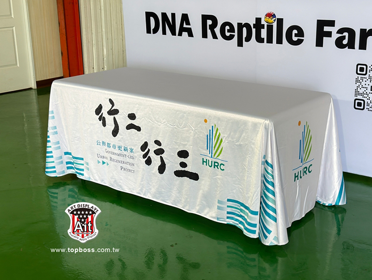 裝飾用桌布: 一般為長條型,鋪在桌面的長面或寬面,二邊下墜依喜好30-40公分或觸地。全彩桌飾布可以搭配素面款桌巾一起訂購。