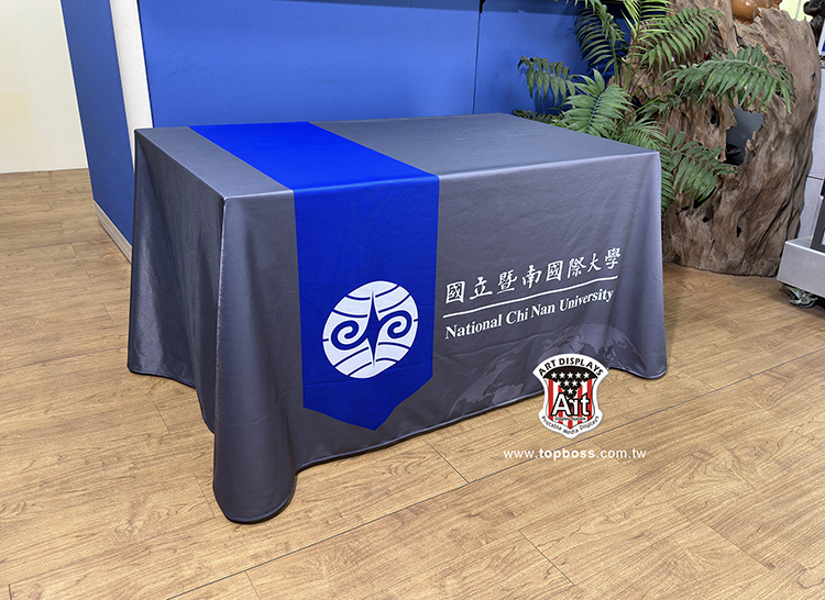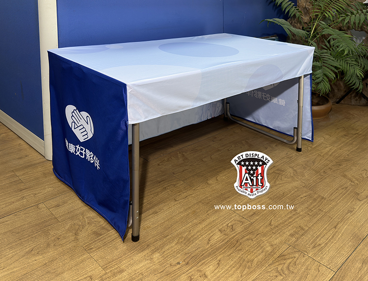 全罩式桌巾: 為三片式,上下兩片為長面觸地桌擺,中間片依照桌子實際長度再加寬面觸地桌擺,加工後寬幅最多可達148cm。