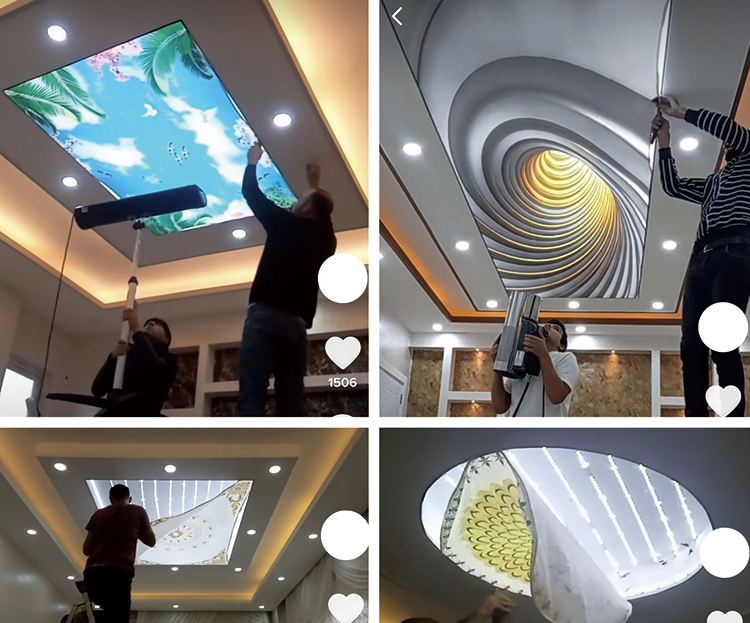首先我們需要利用木架或鐵架按廠家要求,於指定距離做出設計上所要求的形狀,原理如同傘的骨架一樣,然後再用專鋁合金龍骨碼安裝在架子之底部,隨後即可安裝軟膜天花,即可達到設計效果。