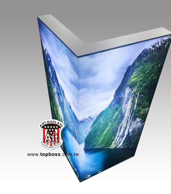 4、 拉布燈箱採用優良鋁合金材質,規格有 4/ 6/ 8/ 10/ 12cm厚度,單面燈箱或者雙面燈箱設計,用角碼進行拼接,組裝上非常簡單快速。