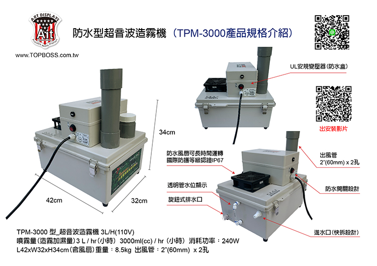* 註:噴頭、陶瓷造霧片、尼龍管、快速接頭配件為消耗品,不列入保固範圍*。 ( 防水耐酸鹼,國際防護等級認證IP67 )