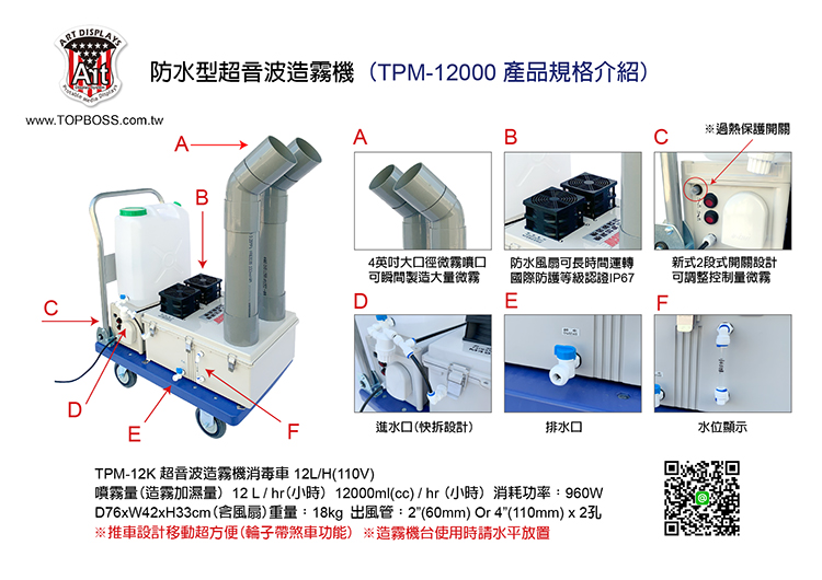 * 註:噴頭、陶瓷造霧片、尼龍管、快速接頭配件為消耗品,不列入保固範圍*。 ( 防水耐酸鹼,國際防護等級認證IP67 )