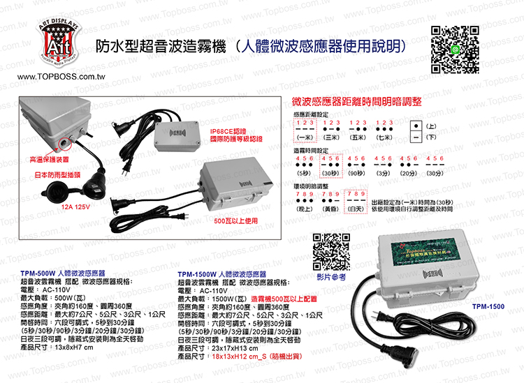 * 註:噴頭、陶瓷造霧片、尼龍管、快速接頭配件為消耗品,不列入保固範圍*。 ( 防水耐酸鹼,國際防護等級認證IP67 )
