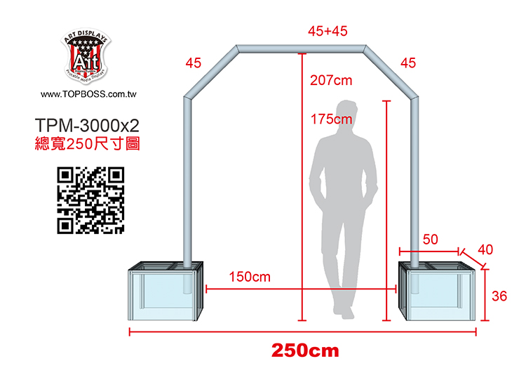 產品出廠規格為裸機,不包含鋁合金腳架及管材加工費用