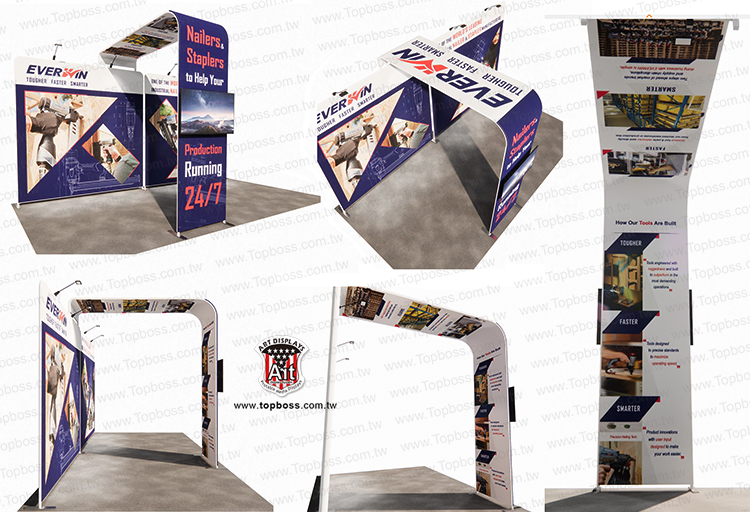 輕量且完全客製化的結構設計,高科技阻燃布,數位微噴設備(韓國D.gen)寬300公分無接縫,全國最大輸出尺寸,重複使用能取代木工裝潢的時間,節省拆除後的資源浪費,更能取代傳統制式鋁架拼接組合呆板的樣式!