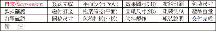 ※ 製作時間:收到檔案起約10-15個工作天可交件,大型套組20天以上。