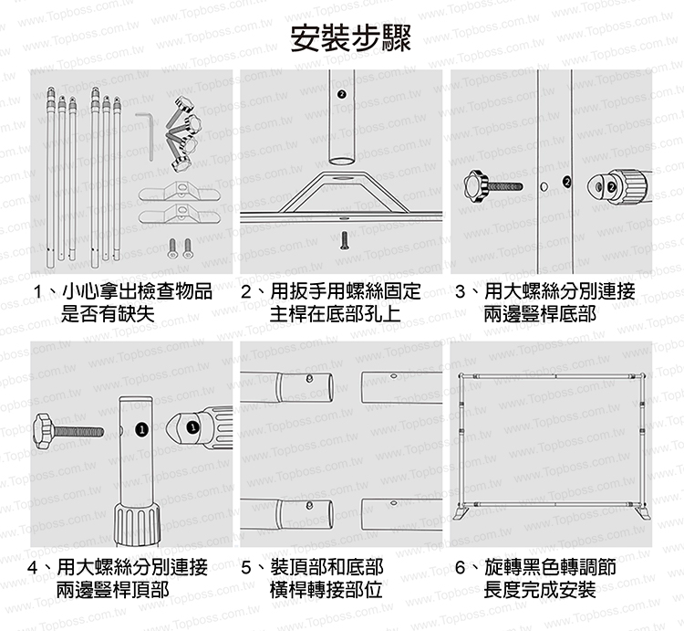 伸縮尺寸: (W)189~335 x (H)108~265cm (器材尺寸)
