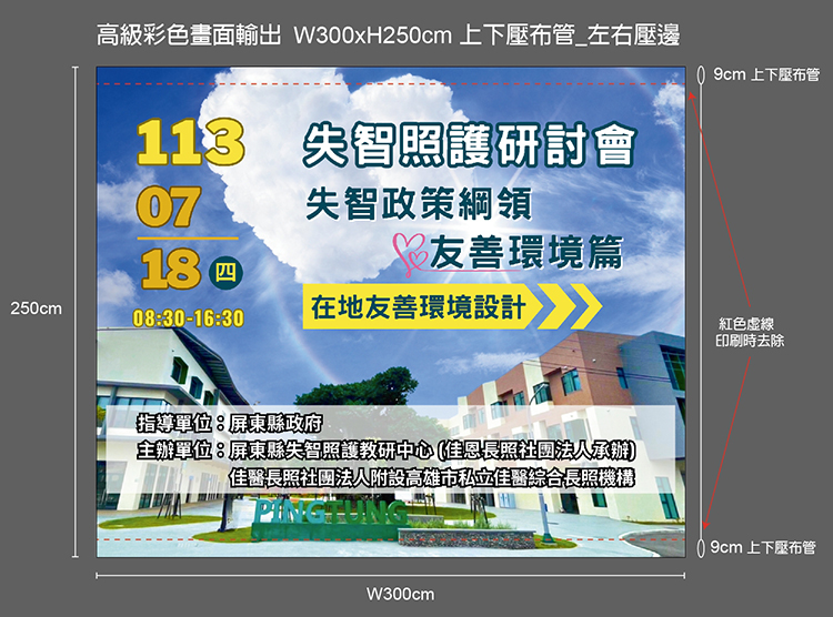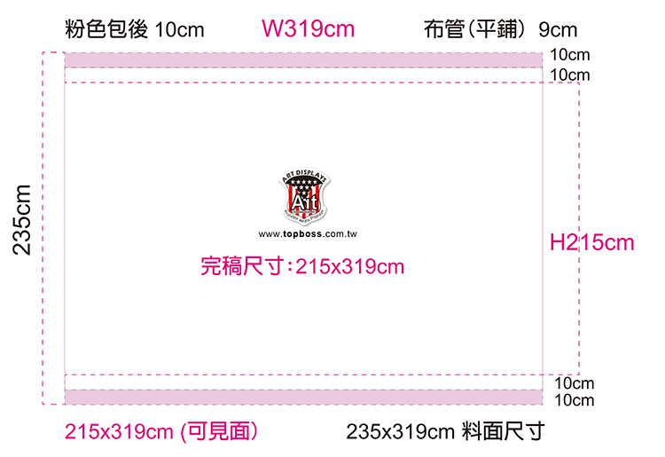 畫面尺寸: 319x215cm 左右縫1cm單線,上下縫平鋪10cm 旗套,