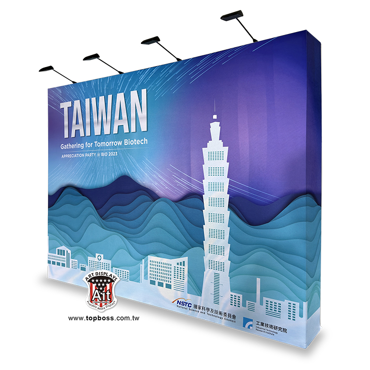 最新技術的拉網式卡布展屏 ,輕便的讓您難以置信集束成捆的網架 ,幾分鐘內彈起成一個大框架 ,既靈活又整潔,300cm高寬無接縫輸出 ,配合專用投射燈 ,令您的展品陳列光彩奪目 ,安裝簡易、無須任何工具;架身輕巧、易於攜帶;亦可自由組合及重覆使用,(若需現場安裝費用另計)。