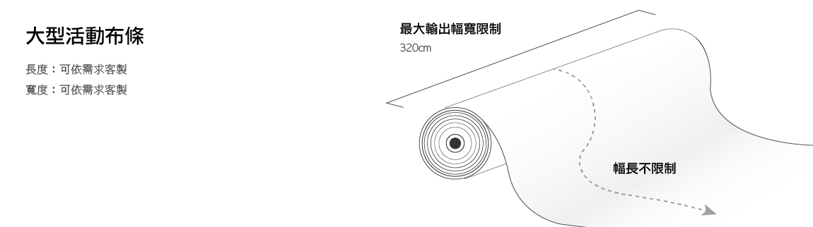 最大寬度:90/ 120/ 150/ 318cm 長度無限 (有兩種尺寸 W150 / W320cm )
