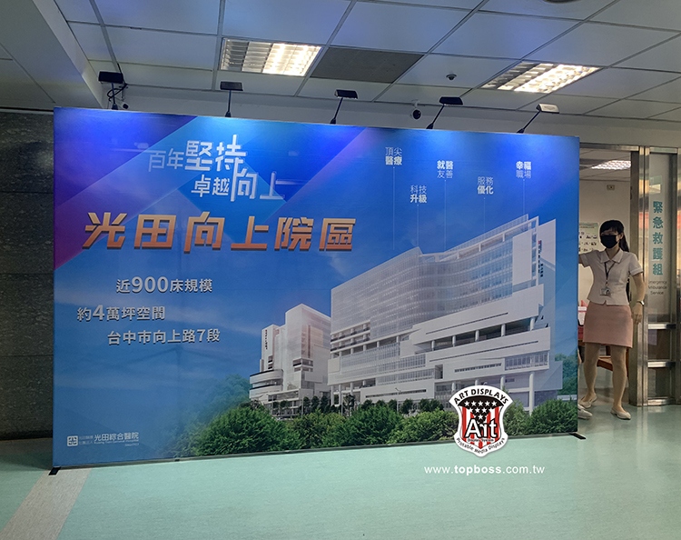 最新技術的拉網式卡布展屏 ,輕便的讓您難以置信集束成捆的網架 ,幾分鐘內彈起成一個大框架 ,既靈活又整潔,300cm高寬無接縫輸出 ,配合專用投射燈 ,令您的展品陳列光彩奪目 ,安裝簡易、無須任何工具;架身輕巧、易於攜帶;亦可自由組合及重覆使用,(若需現場安裝費用另計)。