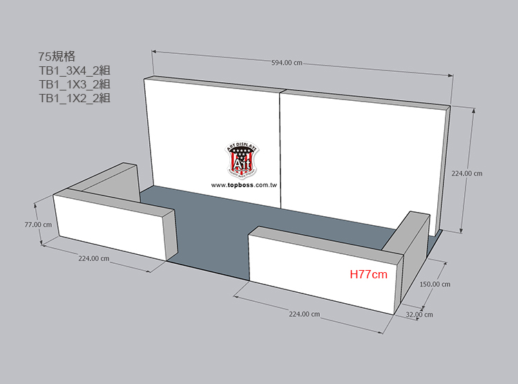 14/+ 腳1/+燈2/ (主畫面)= 20kg x 1 (主畫面224x597cm)