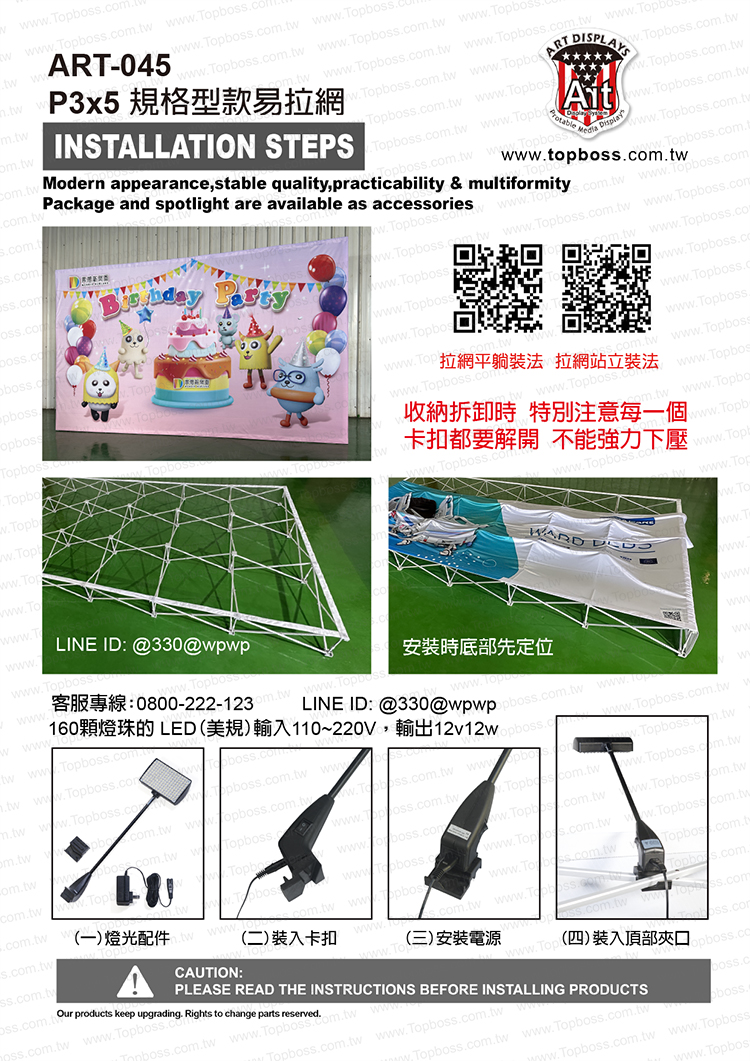 產品特性: 2023年最Hot的展示器材.操作簡單使用方便.重量最輕一體成型.畫面可更換.只要一分鐘.效果立即呈現.適用展覽會場.展覽廣告.巡迴展示.商業促銷.