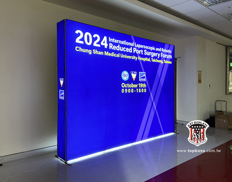 2023畫面升級後的重量僅剩十分之一 免工具即可組裝,畫面300cm高寬,完全可無接縫,不反光不皺褶是彈性布的產品特性,品牌展示牆兼具拍攝用背景超適合~