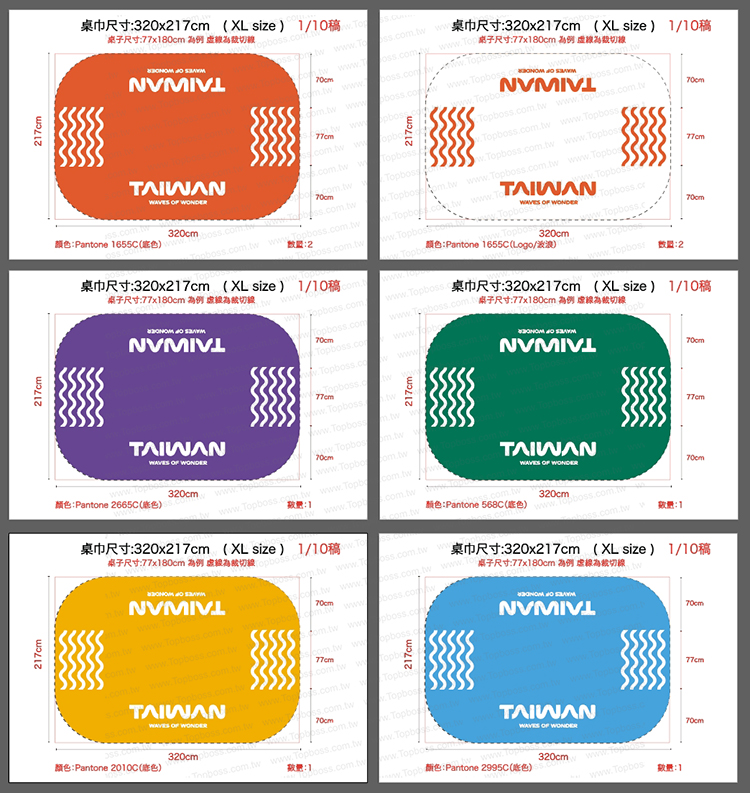 Pantone 347C 現場校色 (可指定 國際PANTONE標準色卡(色票) 色號印刷,誤差 9% 請參考~~) PMS色號即為「彩通配色系統®」(PANTONE MATCHING SYSTEM®,簡稱PMS) 完成尺寸: 280x280cm 熱轉斜紋布 重量: 2.8kg 加工方式 背後車縫5cm魔鬼氈(母) 完成尺寸: 358x225cm 熱轉斜紋布 重量: 2.2kg 加工方式 背後車縫5cm魔鬼氈(母) 完成尺寸: 217x320cm 熱轉斜紋布 重量: 1.6kg 加工方式 四邊車邊 (八幅12.8/13.5kg) 完成尺寸: 217x320cm 熱轉斜紋布 重量: 1.6kg 加工方式 四邊車邊 (六幅01.13/10kg) 完成尺寸: 217x320cm 熱轉斜紋布 重量: 1.6kg 加工方式 四邊車邊 (八幅12.8/13.5kg) 完成尺寸: 250x400cm 熱轉斜紋布 重量: 2198.5g 加工方式 四邊車邊 按圖施作 Pantone 349C / Gray 8C現場校色 ( 國際PANTONE標準色卡(色票) 色號印刷,誤差 9% 請參考~~) PMS色號即為「彩通配色系統®」(PANTONE MATCHING SYSTEM®,簡稱PMS) 完成尺寸: 300x450cm 熱轉斜紋布 重量 : 3.8kg 加工方式 背後車縫5cm魔鬼氈(母)