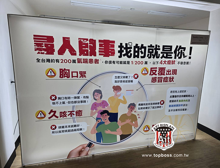 可選擇有: (一) 內打燈(LED燈箱) (二) 外打燈 頂燈方式