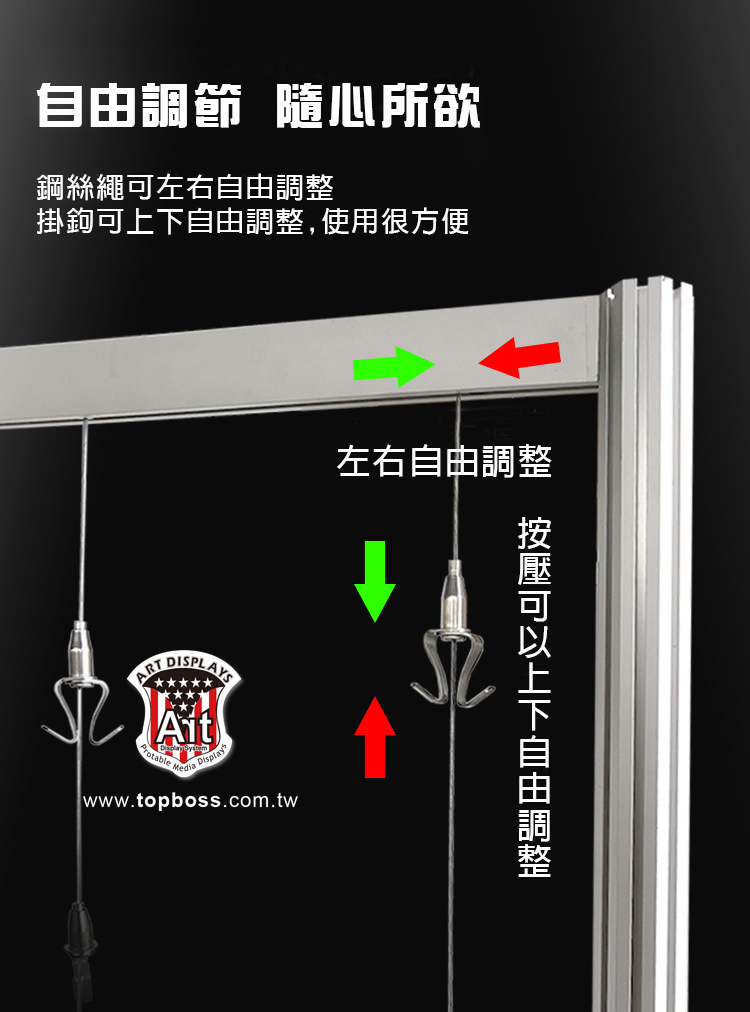 4.底部掛環入槽+單面掛勾 / 鋼絲線夾頭