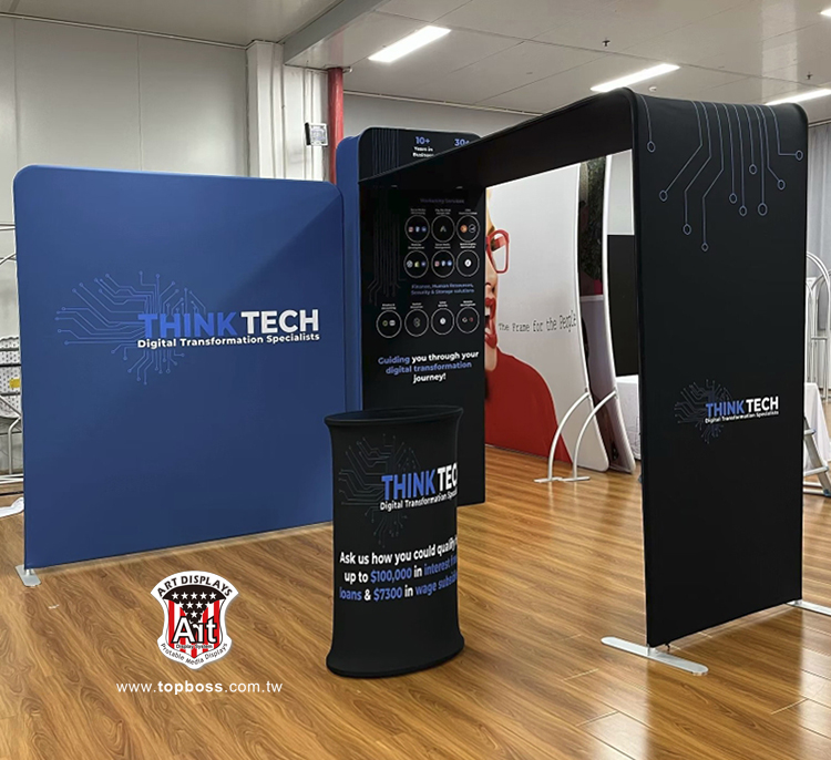 輕量且完全客製化的結構設計,高科技阻燃布,數位微噴設備(韓國D.gen)寬300公分無接縫,全國最大輸出尺寸,重複使用能取代木工裝潢的時間,節省拆除後的資源浪費,更能取代傳統制式鋁架拼接組合呆板的樣式!