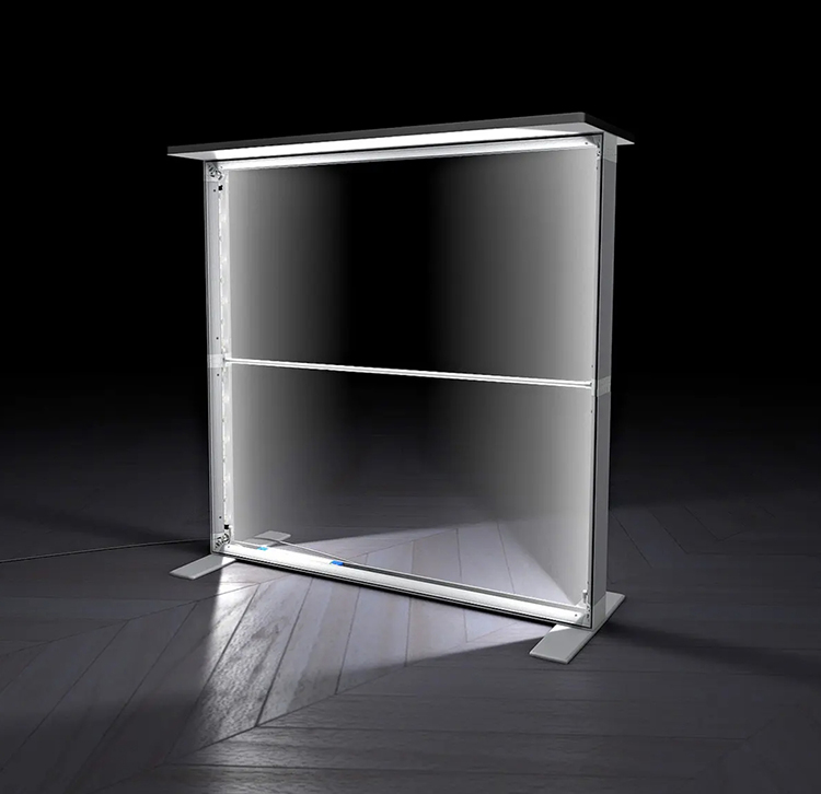 ※ 產品設計為携帶組合式燈箱,收納運送尺寸長度為140cm,鋁材重量約為22kg,一般轎車即可運送,前置畫面為背打光無接縫阻燃燈布,後置為黑白遮光布易於攜帶,畫面摺疊展開後平整無摺痕,LED打光後讓您的廣告畫面光彩奪目~