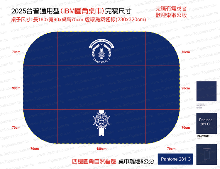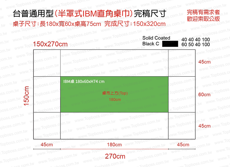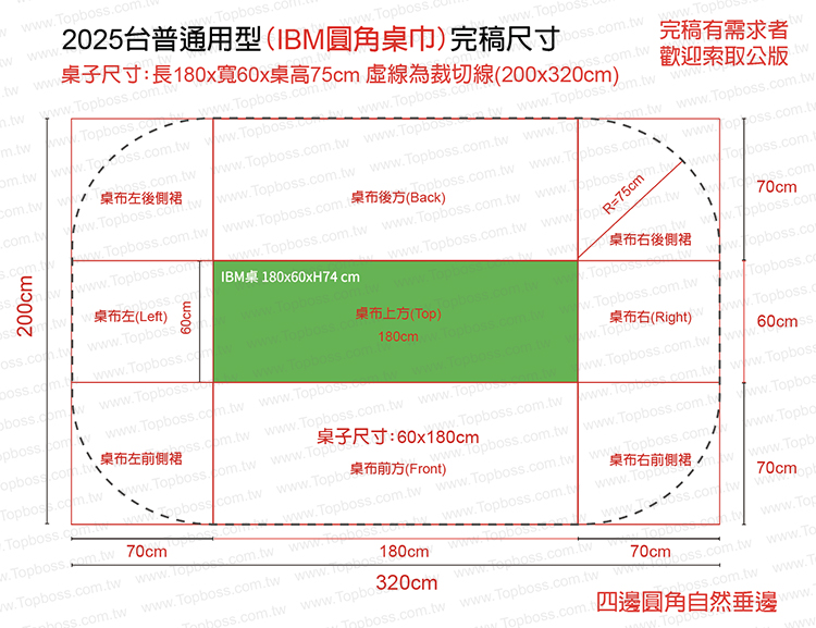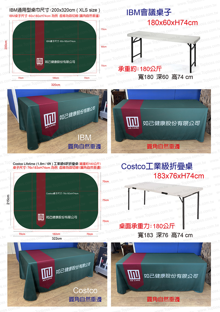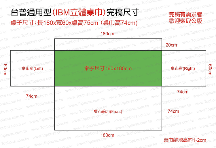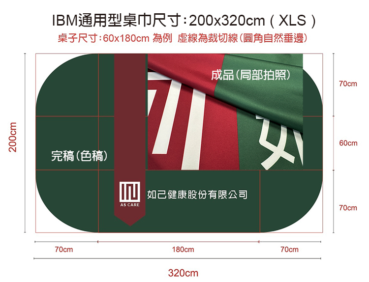 IBM通用型桌巾展開尺寸: 200x320cm (桌子尺寸: W60xL180xH74cm)