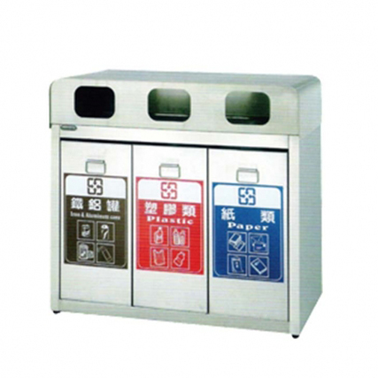 TST3-310B_不鏽鋼資源回收筒 (三分類平頂附推板)