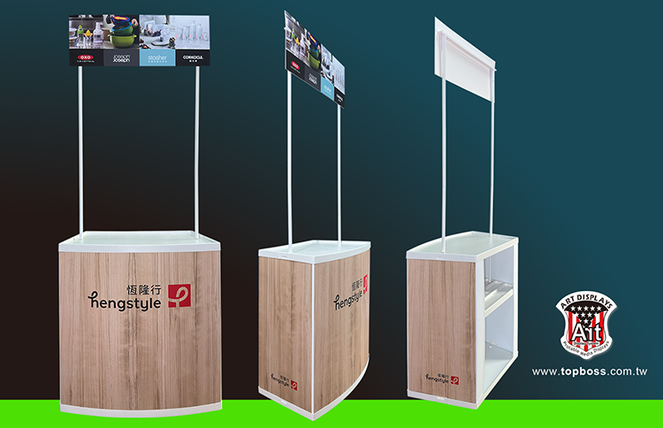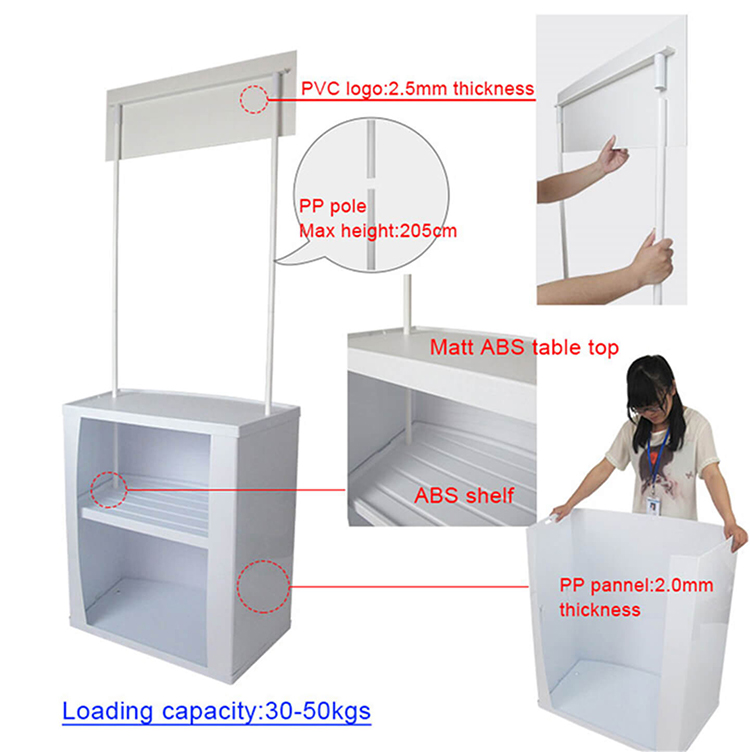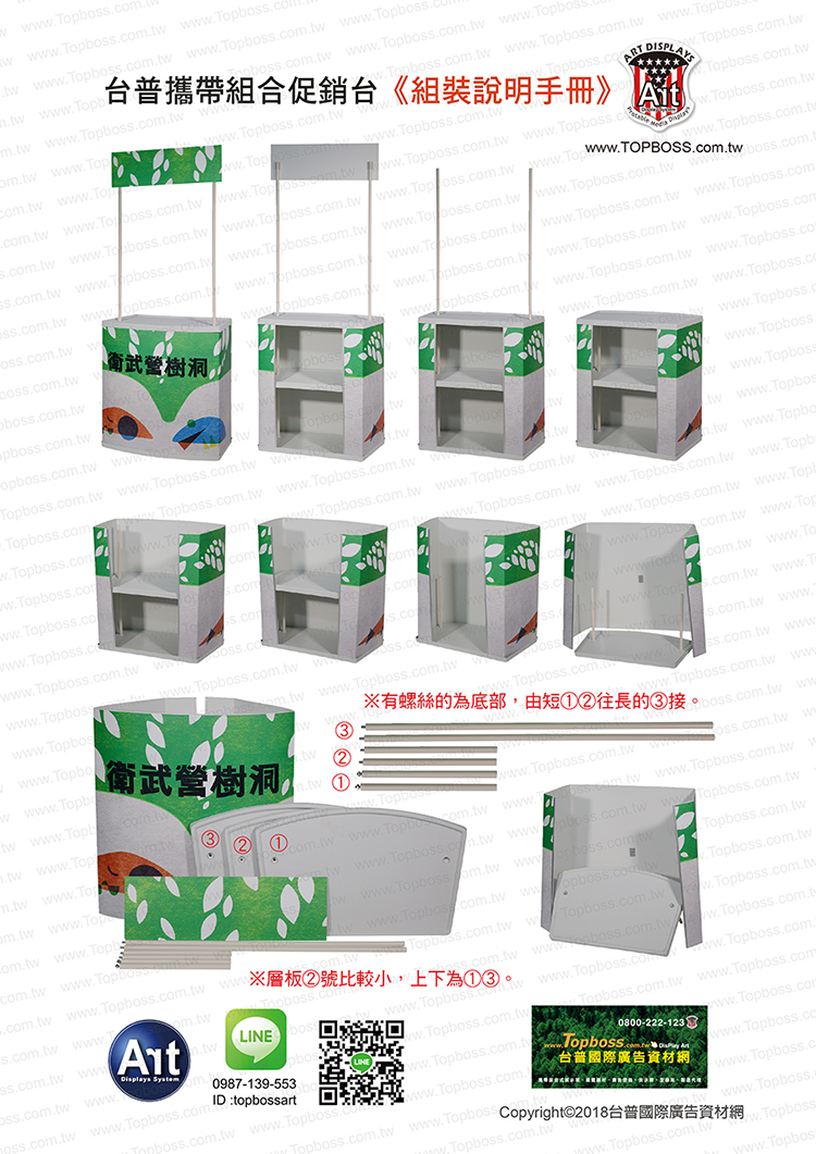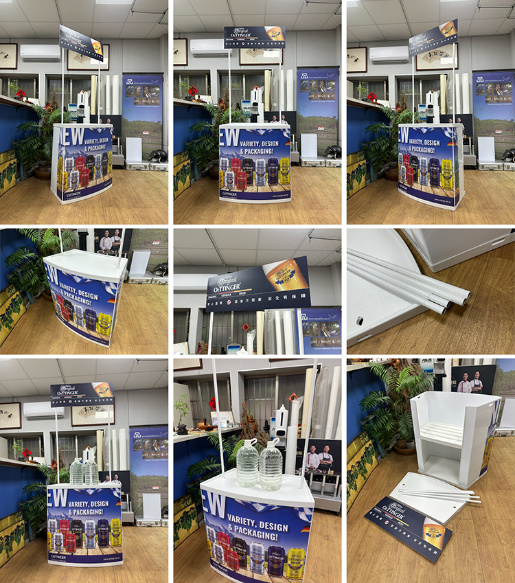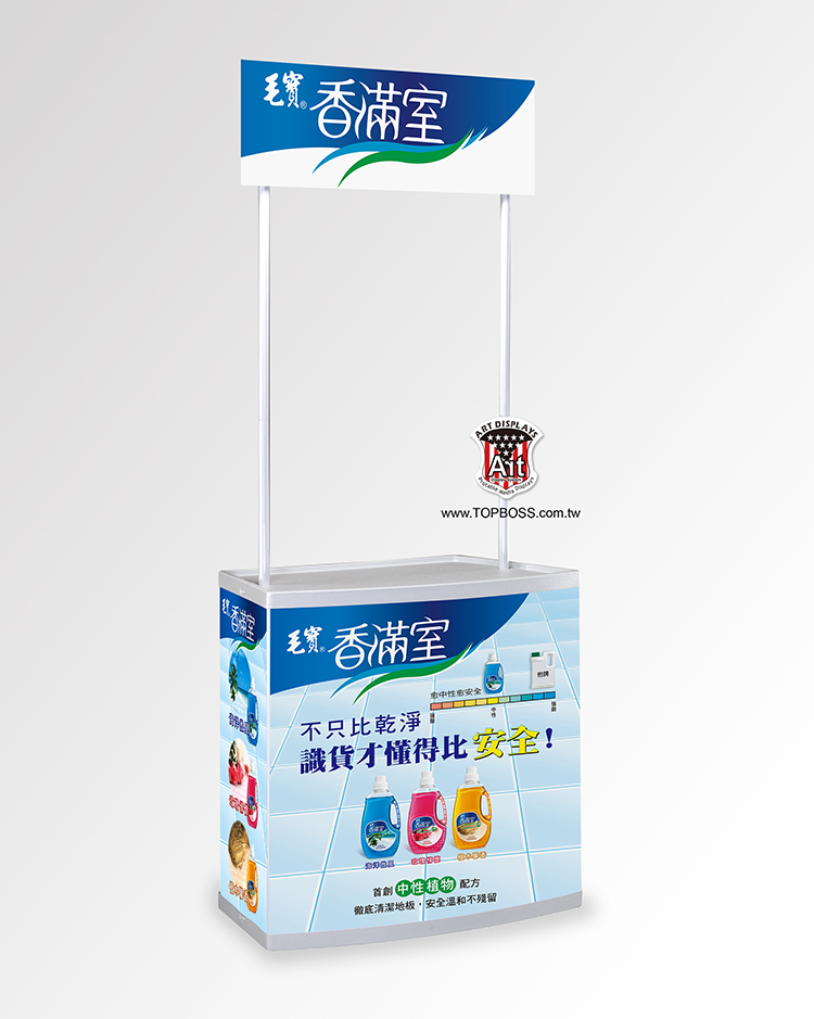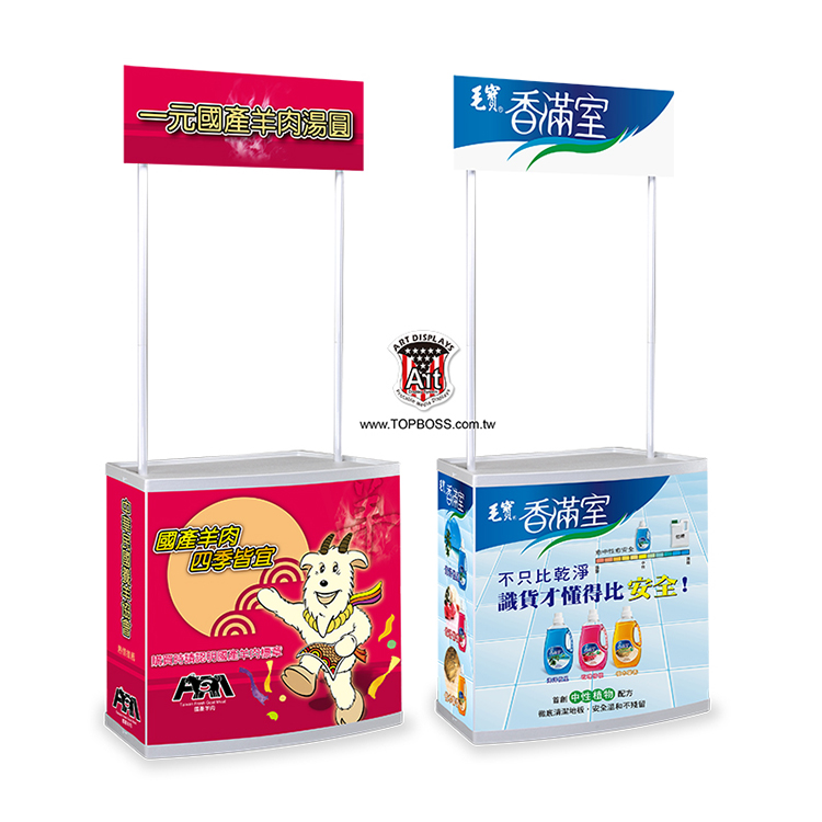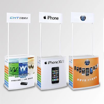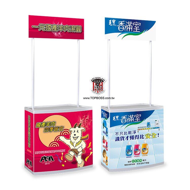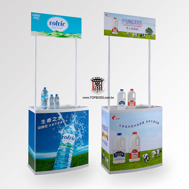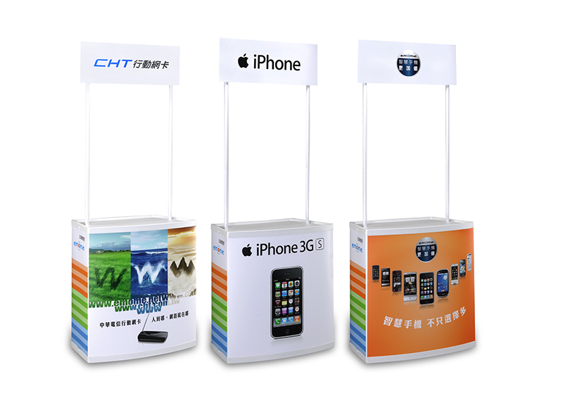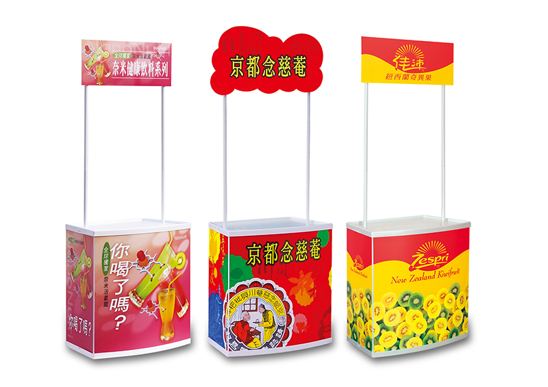 產品特性: 攜帶組合式促銷台,體積適中容易安裝,隨時立即展示,輕巧便攜,成本低適合各種賣場展覽、銷售會場、試吃廣告、巡迴展示、商業促銷......等