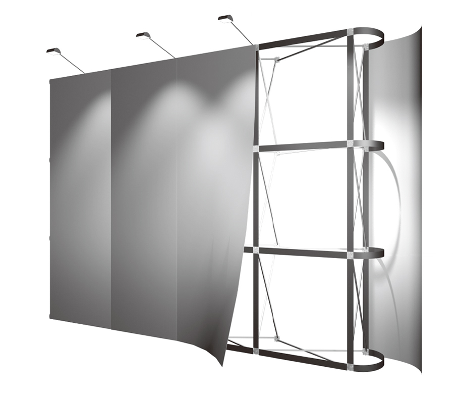 材 質: 鋁合金(直桿x29.包邊x4.膠板x6.磁條x1.燈具x4.拉桿箱x1) 產品特性: 最新技術的拉網式展屏,輕便的讓您難以置信集束成捆的網架,幾分鐘內彈起成一個大框架.既靈活又整潔,採用特製磁吸貼畫技術,配合專用投射燈,令您的展品陳列光彩奪目