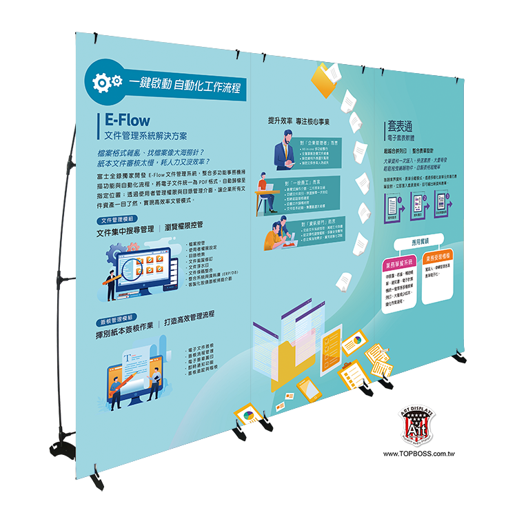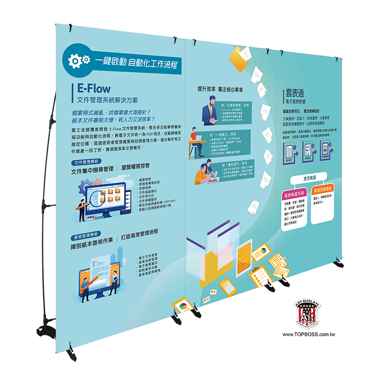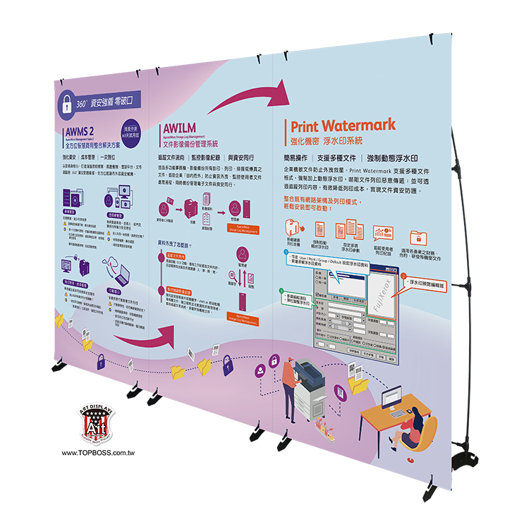 產品特性: 您可能從沒有想過,促銷展示活動能如此簡單,只要60秒時間,二個步驟,圖像立即展示,且為系統性展示架,因應不同場地畫面只須添購配件即可改變,簡單簡潔又大方,有助於提昇企業優質形象。