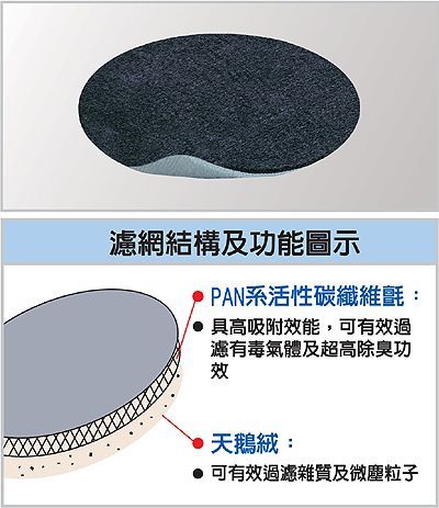 附黏貼魔術黏及雙面膠,採用高效能活性碳纖維氈,D:22cm