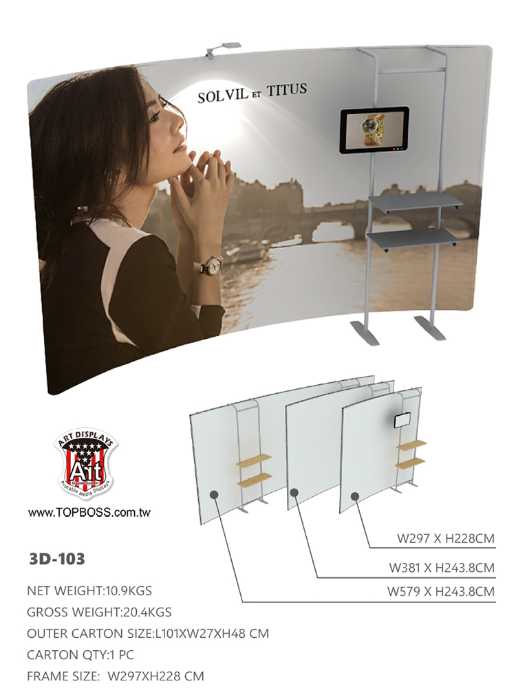 易立特是一種輕質鋁管框架系統,它提供了一整套完整的商業展架系列產品,且有眾多的造型設計。我們提供各種靈巧的結構和多樣的配件,使之能夠按照客戶需求進行不同的組合,以滿足各類展示活動需求。可水洗的高彈力布套在鋁製框架上,呈現出一種完美簡潔的展示效果。易立特是我們的主流產品,它被應用到我們全球展示服務系統中。易立特同樣可以按客戶個性化需求特別定制,以滿足特殊的客戶需求。我們進口全新的3D弧度彎管設備和高精度數碼印畫設備(韓國D.gen),我們富有創造力的設計團隊助您實現你的創意構想,我們同時也提供展會的安裝和撤展服務。