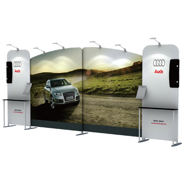 易立特是一種輕質鋁管框架系統,它提供了一整套完整的商業展架系列產品,且有眾多的造型設計。我們提供各種靈巧的結構和多樣的配件,使之能夠按照客戶需求進行不同的組合,以滿足各類展示活動需求。可水洗的高彈力布套在鋁製框架上,呈現出一種完美簡潔的展示效果。易立特是我們的主流產品,它被應用到我們全球展示服務系統中。易立特同樣可以按客戶個性化需求特別定制,以滿足特殊的客戶需求。我們進口全新的3D弧度彎管設備和高精度數碼印畫設備(韓國D.gen),我們富有創造力的設計團隊助您實現你的創意構想,我們同時也提供展會的安裝和撤展服務。