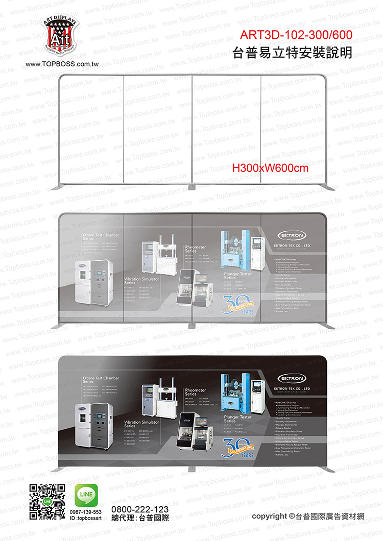 輕量且完全客製化的結構設計,高科技阻燃布,數位微噴設備(韓國D.gen)寬300公分無接縫,全國最大輸出尺寸,重複使用能取代木工裝潢的時間,節省拆除後的資源浪費,更能取代傳統制式鋁架拼接組合呆板的樣式!