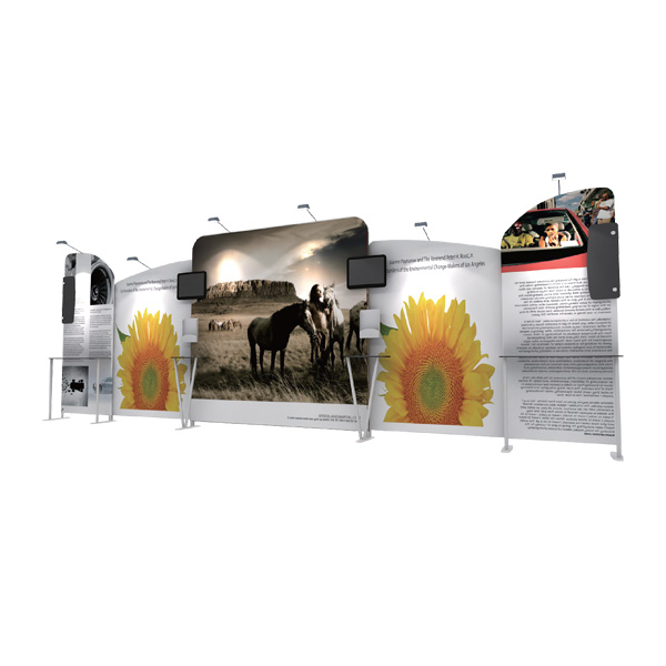 易立特是一種輕質鋁管框架系統,它提供了一整套完整的商業展架系列產品,且有眾多的造型設計。我們提供各種靈巧的結構和多樣的配件,使之能夠按照客戶需求進行不同的組合,以滿足各類展示活動需求。可水洗的高彈力布套在鋁製框架上,呈現出一種完美簡潔的展示效果。易立特是我們的主流產品,它被應用到我們全球展示服務系統中。易立特同樣可以按客戶個性化需求特別定制,以滿足特殊的客戶需求。我們進口全新的3D弧度彎管設備和高精度數碼印畫設備(韓國D.gen),我們富有創造力的設計團隊助您實現你的創意構想,我們同時也提供展會的安裝和撤展服務。