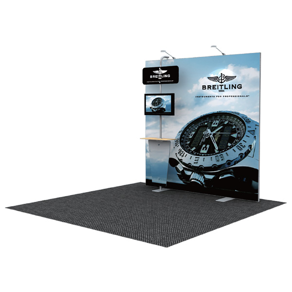 但是在展位的正面和背面可能會使用剛性面板。這個 Magic-window系統將定制模組化解決方案發展成一個可提供高達 30'x30“展位系統。Magic-window 解決方案非常適合國際大型展會,特殊活動裝飾和銷售點展示。