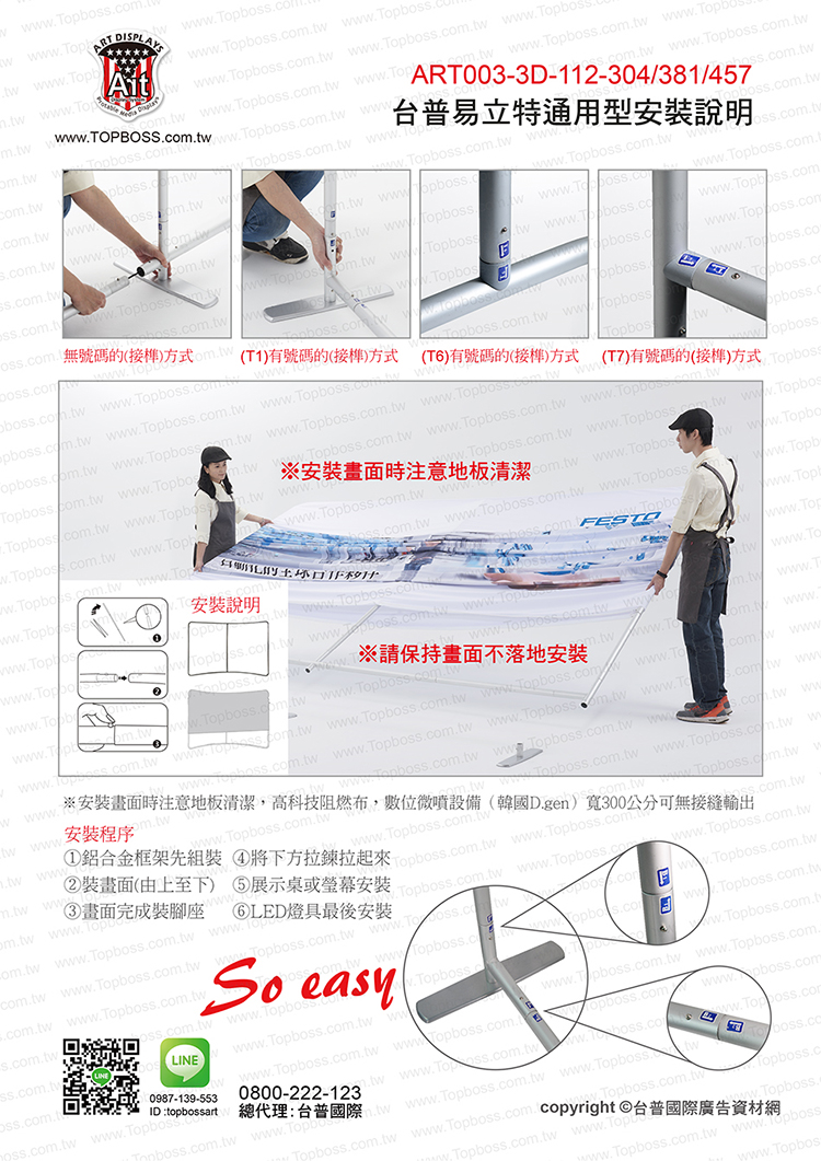 輕量且完全客製化的結構設計,高科技阻燃布,數位微噴設備(韓國D.gen)寬300公分無接縫,全國最大輸出尺寸,重複使用能取代木工裝潢的時間,節省拆除後的資源浪費,更能取代傳統制式鋁架拼接組合呆板的樣式!